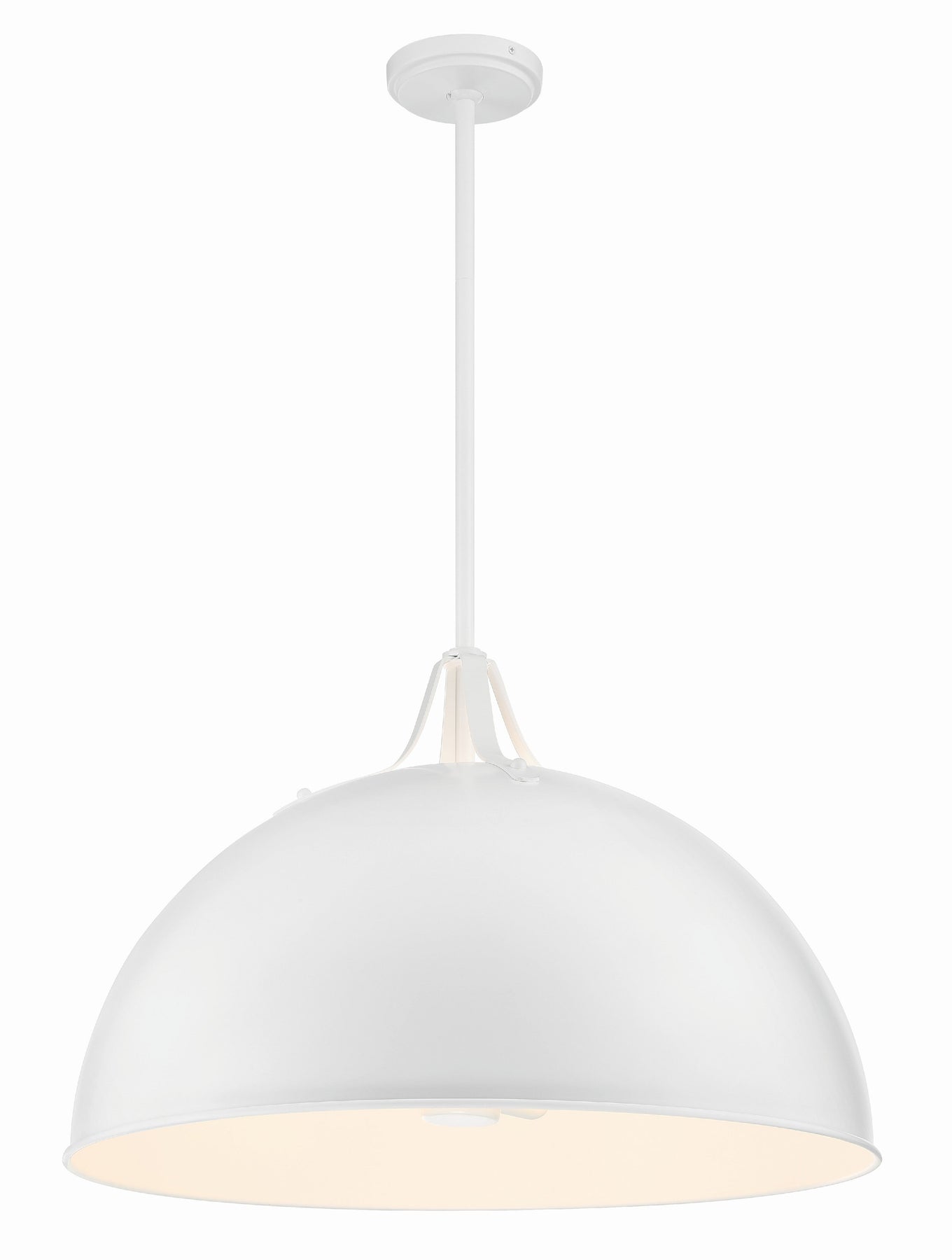 A large dome metal shade presents a clean and streamlined silhouette for our Soto collection. This sculptural one-light or three-light pendant is available in Matte Black with contrasting Antique Gold or Matte White. This industrial meets modern farmhouse design shines direct light downwards into your space, making it a perfect choice when hung over a breakfast nook or in pairs over a kitchen island.