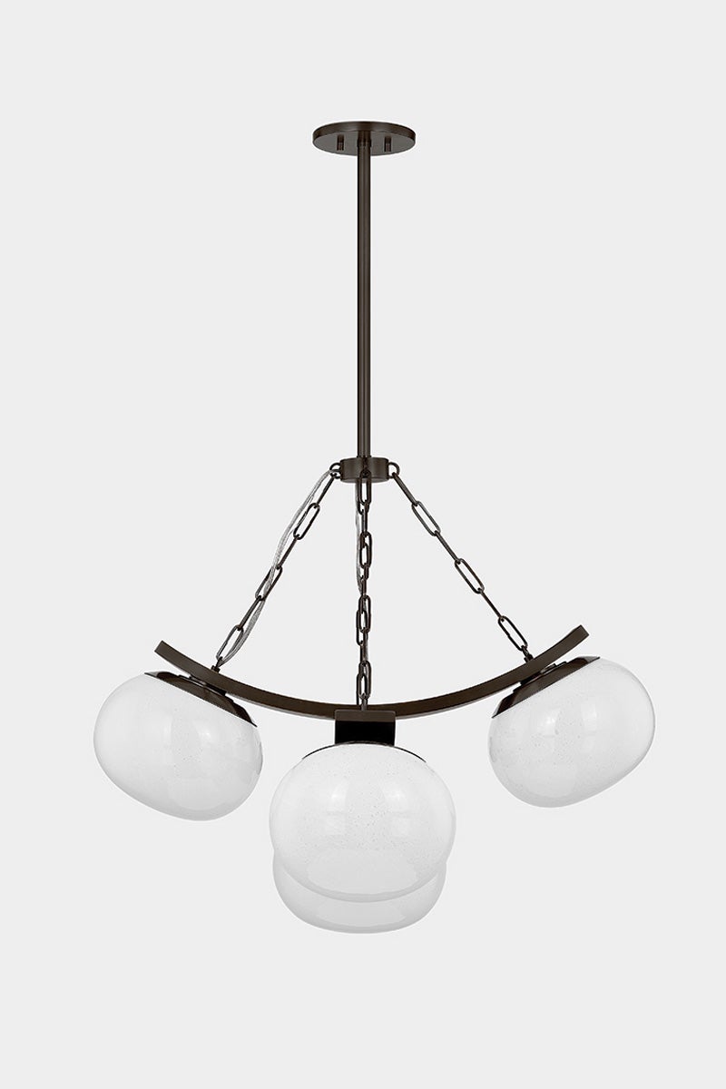 The Duxbury Chandelier by Hudson Valley Lighting is a stylish lighting fixture that combines elegant design with practical functionality. Measuring 31.75 inches in diameter and 26.75 inches in height, this chandelier features a stunning glass shade that allows for a warm glow from five E26 medium base bulbs (not included), each with a maximum wattage of 15W. Choose from sophisticated finish options of Aged Brass or Distressed Bronze to complement your decor. Its UL Damp rating ensures that it is suitable for various environments, providing both beauty and reliability.