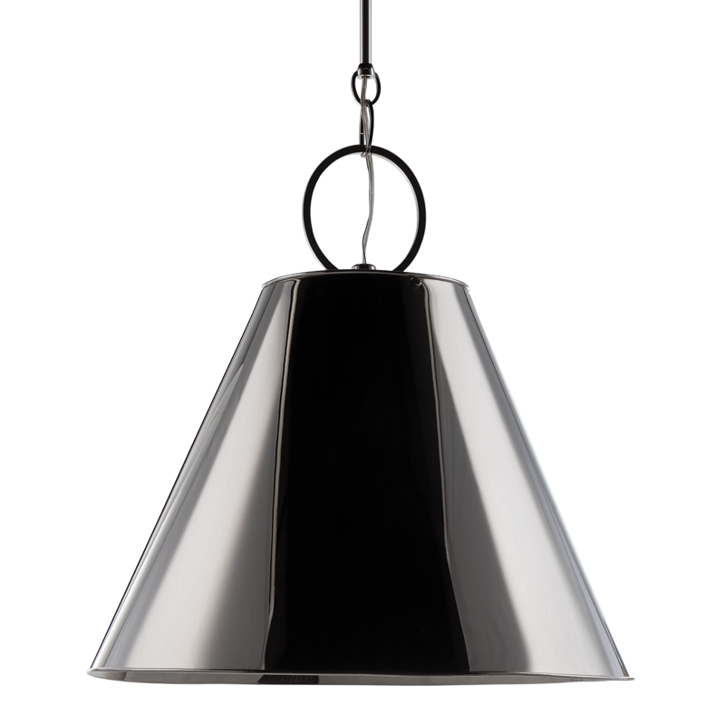 The Hudson Valley Lighting pendant offers a modern aesthetic with its polished nickel finish, making it a striking addition to any space. With a width of 19.00 inches and a height of 20.25 inches, this pendant is designed to accommodate one E26 medium base bulb (not included) with a maximum wattage of 150W, providing ample illumination. The steel shade ensures durability while adding a sleek touch. This fixture is rated for UL Damp locations, making it versatile for various interior settings, including areas with higher moisture levels. Explore additional finish options with Historic Nickel to suit your style.