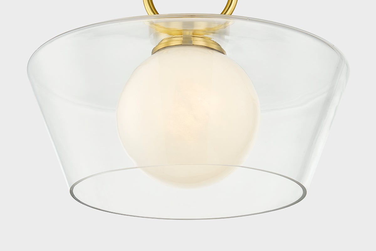 The elegant Hudson Valley Lighting Elmsford features a stunning glass shade that measures 16.00 inches in diameter and stands 13.75 inches high, making it a captivating centerpiece for any room. Designed to accommodate one E26 medium base bulb (not included), it supports a maximum wattage of 15W and is compatible with the recommended A19 bulb. Finished in luxurious Aged Brass, this fixture blends sophistication and functionality, while the UL Damp rating ensures it is suitable for humid environments.