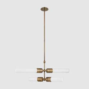 The Darby 4-Light Ceiling Fixture by Troy Lighting boasts a striking Patina Brass finish that adds a touch of elegance to any space. With dimensions of 36.75 inches in width, 12 inches in height, and 50 inches in length, this fixture is designed to illuminate larger areas. It accommodates four GU10 sockets, requiring MR16 bulbs with a maximum wattage of 8W each. The glass shade enhances the quality of light emitted, making it an ideal choice for stylish yet functional lighting. It is also ETL Damp rated, ensuring safe use in humid environments.