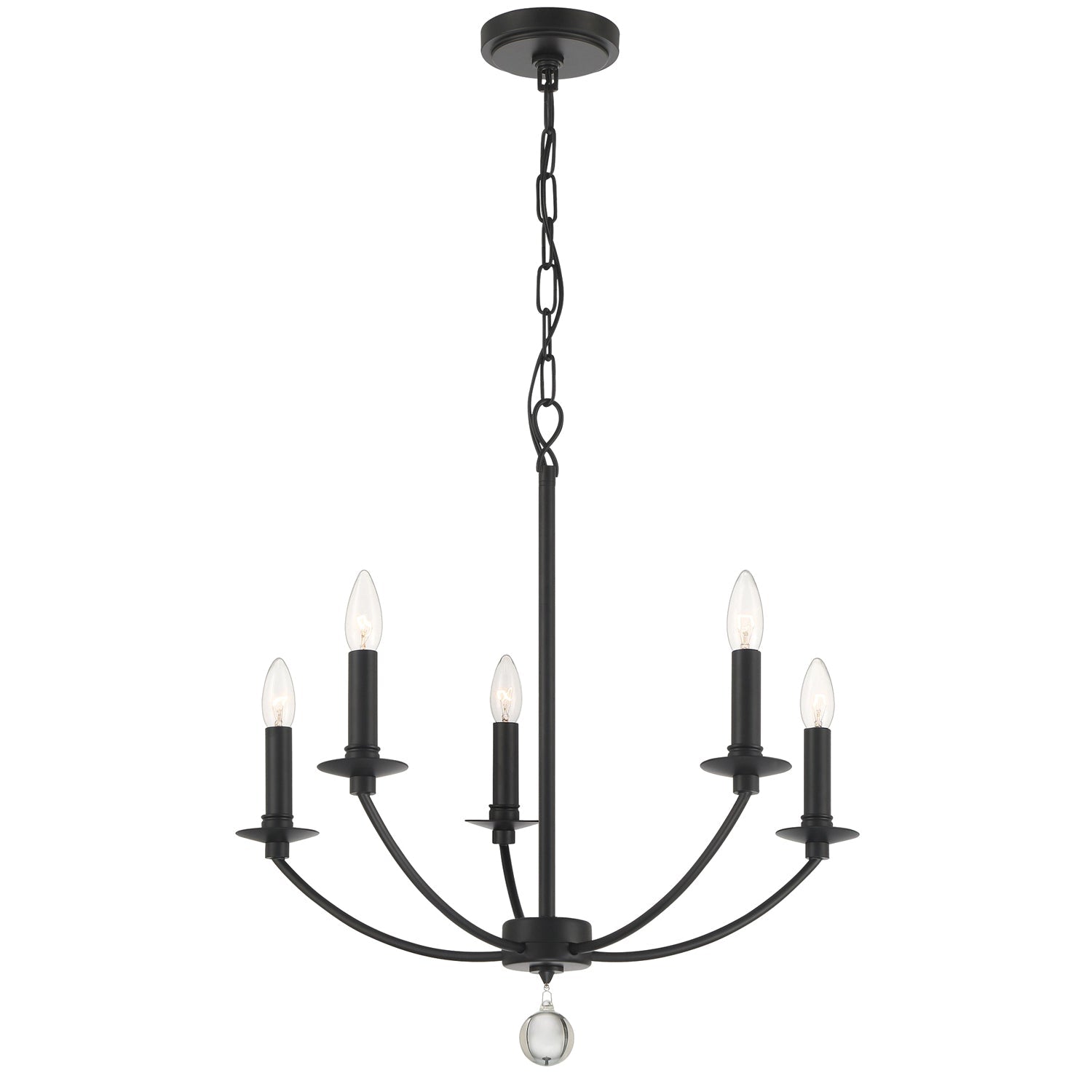 Where traditional styling meets minimalistic aesthetics, The Mila collection truly shines bright. The Mila features a steel frame with delicately curved arms sweeping upward from the center and ending with exposed bulbs. Its clean, straightforward design will work with many interior settings.