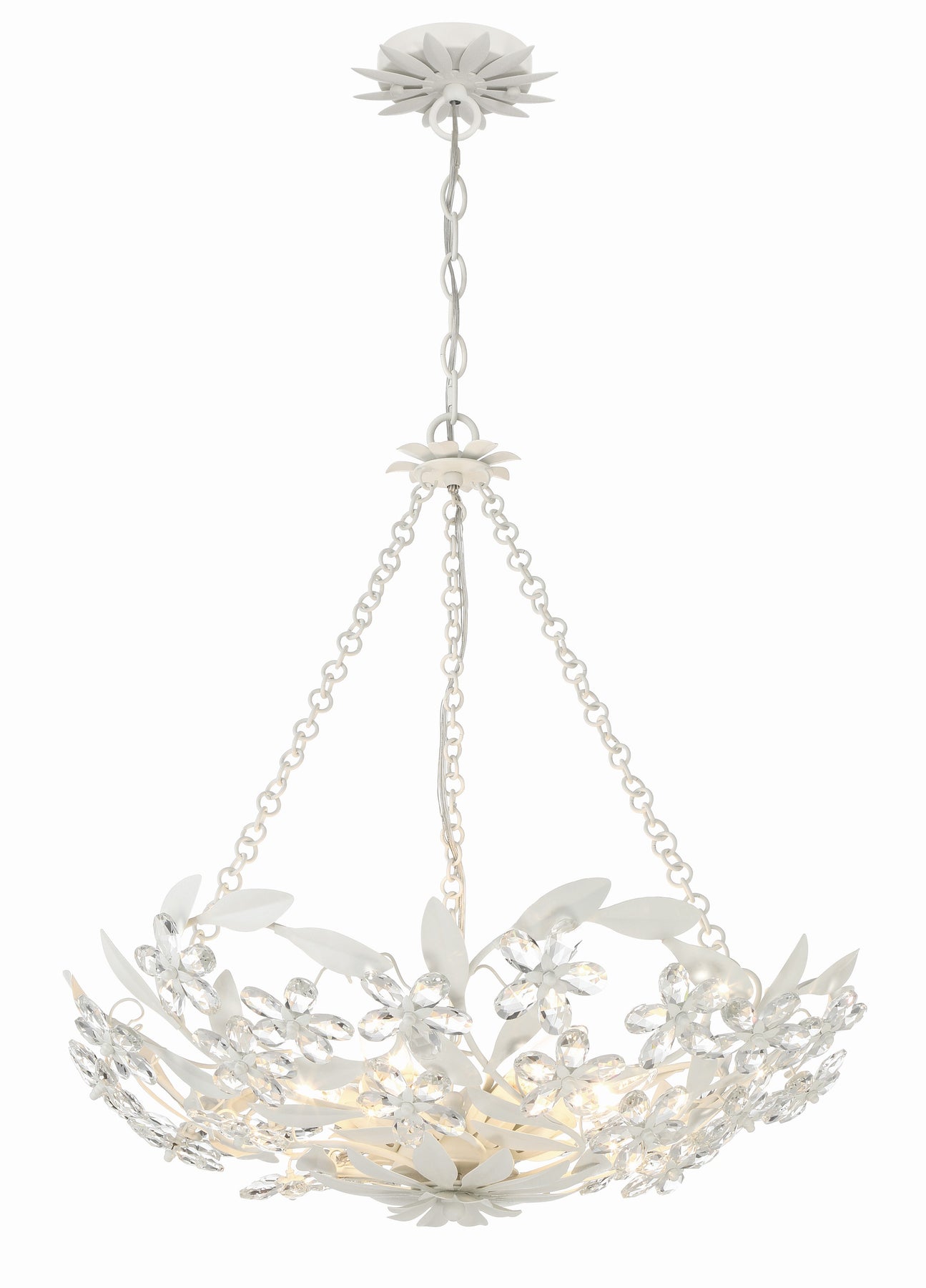 The Marselle Collection is adorned with hand-cut crystal jewels and wrought iron leaves designed in a playful arrangement. The detail of leaves and intricate floral designs lend a sense of organic artistry to each piece, creating a mesmerizing display of nature's splendor. Available in three sophisticated finishes—white, gold and silver, this collection offers a touch of opulence for every decor. The crystal jewels are cleverly connected to form delicate flowers, adding a touch of whimsy and charm to your space. Even the canopy features a leafy design, completing the harmonious blend of nature and art.