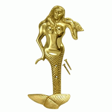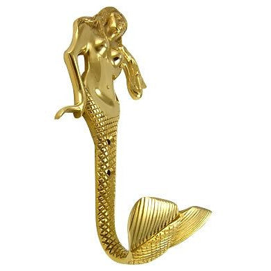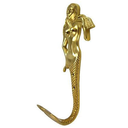 - 8 1/2 Inch Solid Brass Mermaid Hook (Polished Brass Finish)