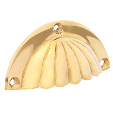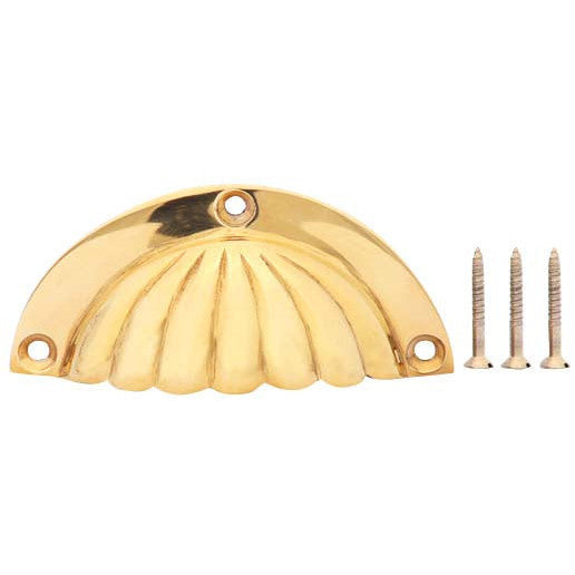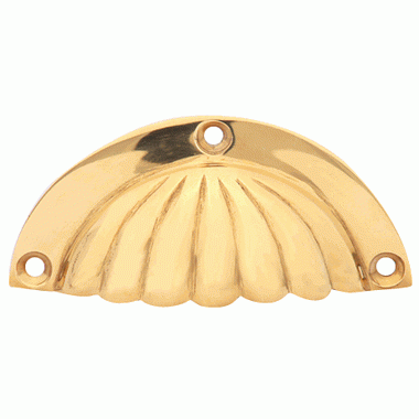 - 3 1/2 Inch Solid Brass Scalloped Cup Pull(Polished Brass Finish)