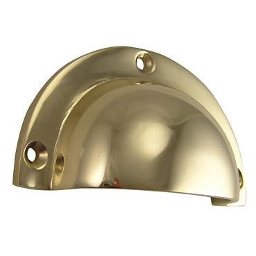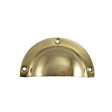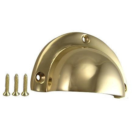 3 1/2 Inch Solid Brass Traditional Cup Pull (Polished Brass Finish) - measures 3 1/2 inches wide and 2 inches tall. Projection of 7/8 inches. Comes complete with mounting hardware. Made from Solid Brass.