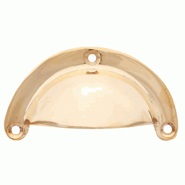 3 3/8 Inch Overall (3 Inch c-c) Solid Brass Traditional Cup Pull (Polished Brass Finish) - Measures 3 3/8 inch wide and 2 inch tall with a projection of 3/4 inch. Center to Center mounting distance measures 3 inch (3.00 c-c). Comes complete with mounting hardware. Available in several finishes including polished brass, antique brass, Black Bronze, polished chrome, Satin Nickel, and flat black.