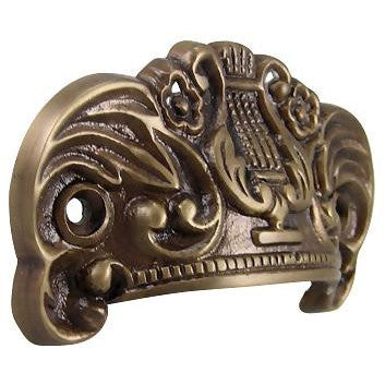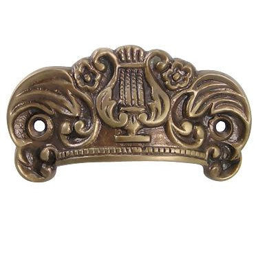 - 3 5/8 Inch Overall (2 3/4 Inch c-c) Solid Brass Lyre Cup Pull (Antique Brass Finish)
