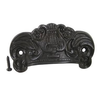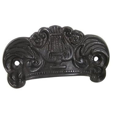 3 5/8 Inch Overall (2 3/4 Inch c-c) Solid Brass Lyre Cup Pull (Black Bronze Finish) - measures 3 1/2 inches long and 2 inches tall. Center to center mounting distance is 2 3/4 inches (69.85 mm 2.75 c-c). Highly ornate and hand finished detailing. Available in Polished Brass, Antique Brass, and Black Bronze finishes. Comes complete with mounting hardware.
