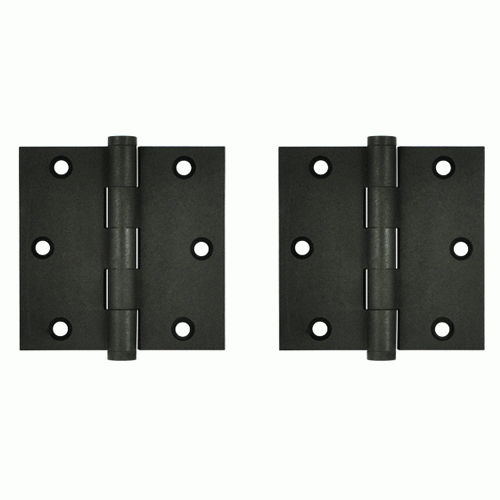 3 1/2 Inch X 3 1/2 Inch Solid Brass Hinge Interchangeable Finials (Square Corner, Bronze Dark Finish) - measures 3 1/2 inches by 3 1/2 inches and comes complete with the mounting screws. These are heavy duty residential hinges shown with squared corners - available in square or rounded corners. Finials are available in various styles and simply unscrew on the top and bottom. Finials are shown in various finishes but the finial finish will match the hinge. Sold in Pairs.