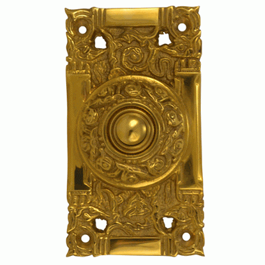 4 1/4 Inch Art Nouveau Solid Brass Doorbell (Polished Brass Finish)