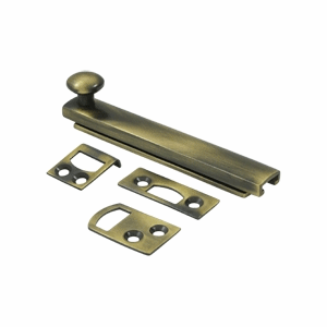 4 Inch Solid Brass Surface Bolt (Antique Brass Finish)- This surface bolt is designed with concealed screws and are a wonderful alternative to improve security and appearance. This surface bolt comes complete with mounting hardware and is available in a variety of finishes and lengths.