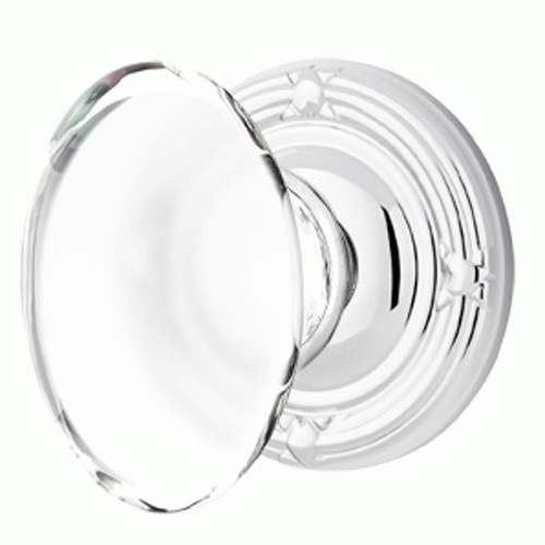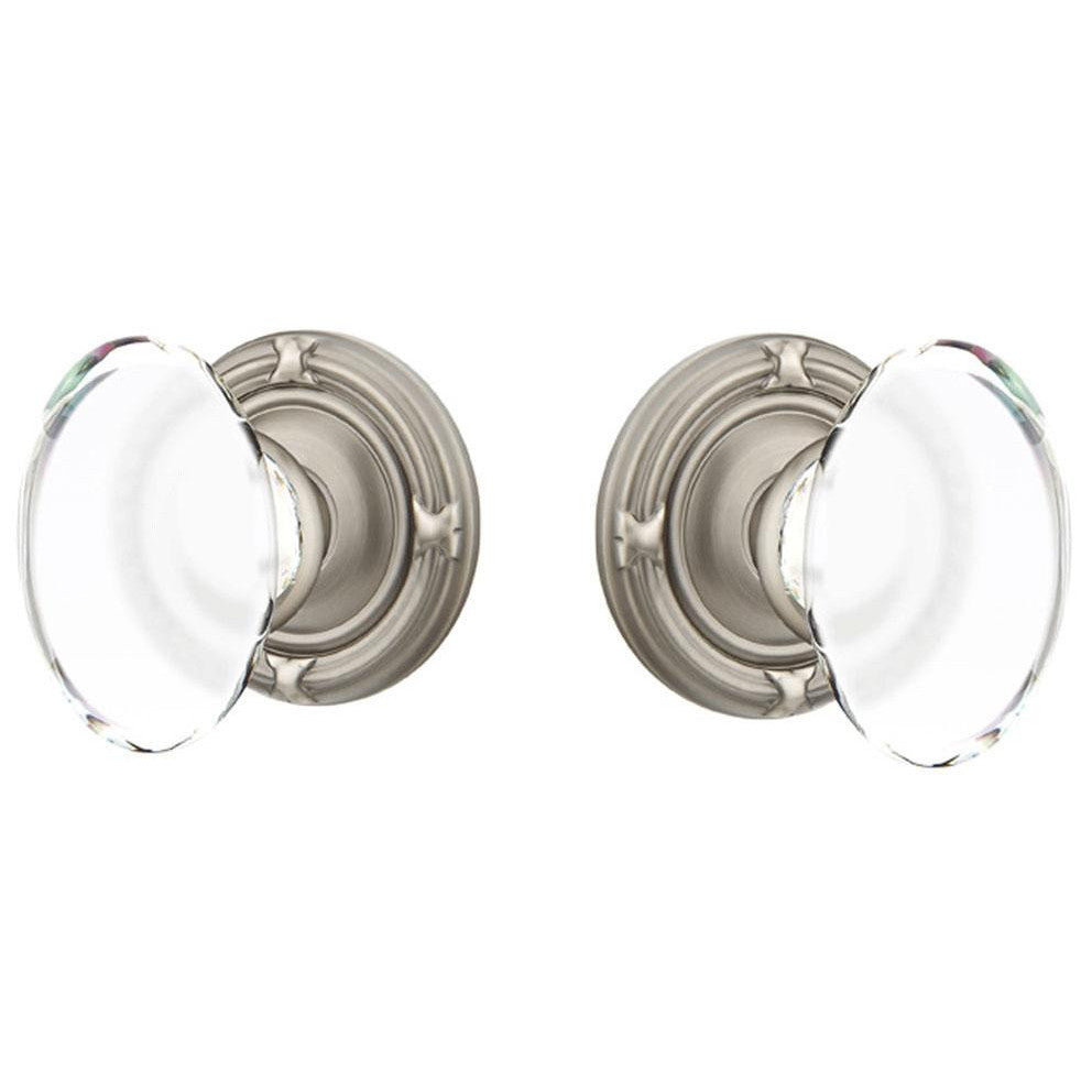 Crystal Hampton Door Knob Set With Ribbon & Reed Rosette - This Hampton style door knob set features an elegant crystal construction. Measures 2 3/4 inches overall with a 3 1/4 inch projection. This knob set with fit any door thickness between a standard 1 3/8 inch to a 2 1/4 inch thick. This door knob set is available in several finishes and functions. Passage (Hall/Closet) and Privacy (Bed/Bath) sets come complete with the functioning hardware and a 2 3/8 inch back-set is standard. A 2 3/4 inch back-set is also available upon request. This particular product has a lead time of approximately 3 to 5 business days.