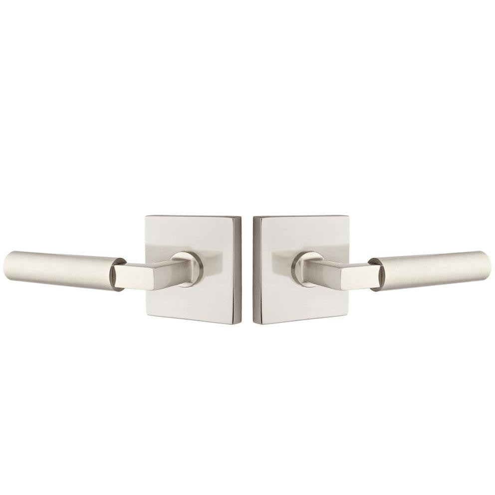 This brass lever door knob measures 5 inches overall with a 2 1/2 inch projection. Includes the two levers and door rosettes. Functional sets also include the lever latch, face plate and strike plate. This set is made for modern doors and it fits any door thickness between 1 3/8 inch to 2 1/4 inches thick. Functional sets come with a 2 3/8 inch back set latch - and a 2 3/4 inch back set may be requested at no additional charge. This door lever set comes complete with mounting hardware. Hardware is required for leversets. The average lead time for this lever is approximately 3 to 5 business days.