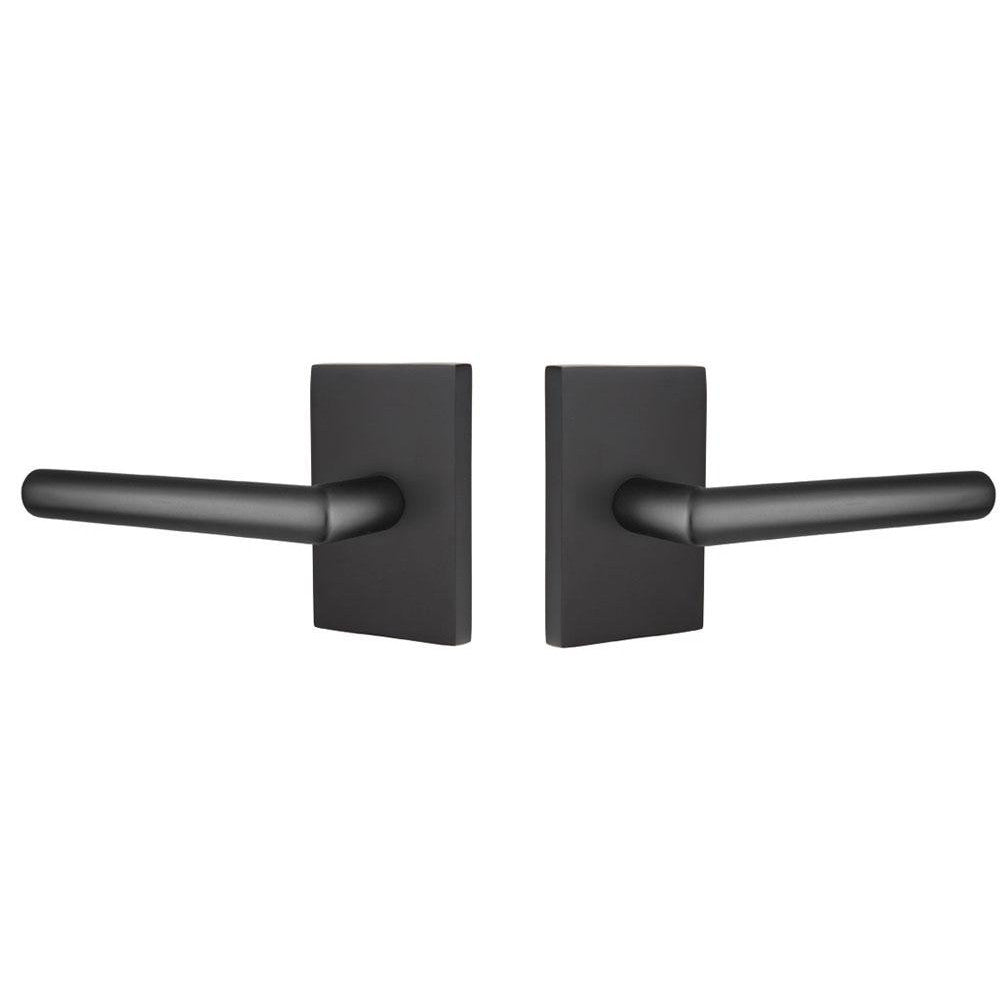 This brass lever door knob measures 6 inches overall with a 2 1/2 inch projection. Includes the two levers and door rosettes. Functional sets also include the lever latch, face plate and strike plate. Available in venetian rubbed bronze, matte black, polished chrome and satin nickel. This set is made for modern doors and it fits any door thickness between 1 3/8 inch to 2 1/4 inches thick. Functional sets come with a 2 3/8 inch back set latch - and a 2 3/4 inch back set may be requested at no additional charge. This door lever set comes complete with mounting hardware. The average lead time for this lever is approximately 3 to 5 business days.