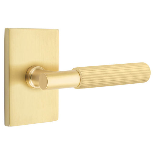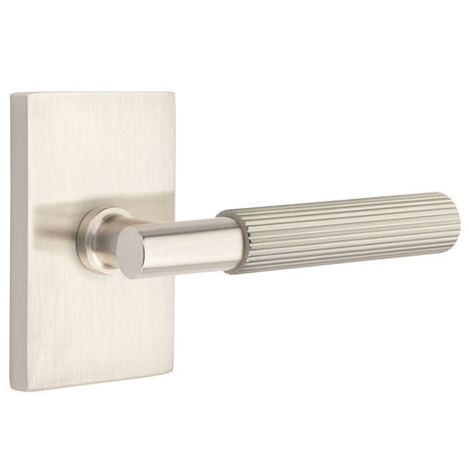 This lever door knob is constructed from solid brass. It measures 5 3/8 inches overall with a 2 1/8 inch projection. Includes the two levers and door rosettes. Functional sets also include the lever latch, face plate and strike plate. Available in several finishes.This set is made for modern doors and it fits any door thickness between 1 3/8 inch to 2 1/4 inches thick. Functional sets come with a 2 3/8 inch back set latch - and a 2 3/4 inch back set may be requested at no additional charge. This door lever set comes complete with mounting hardware. Handing is required for leversets. The average lead time for this lever is approximately 3 to 5 business days.
