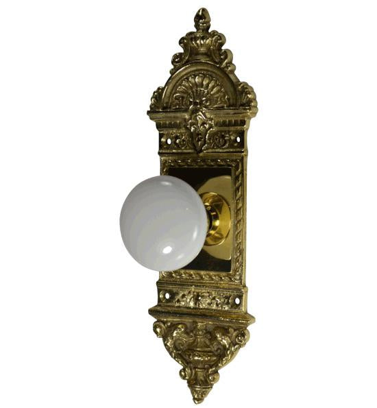 L'Enfant Small Backplate Door Set with White Porcelain Door Knobs (Several Finishes Available)