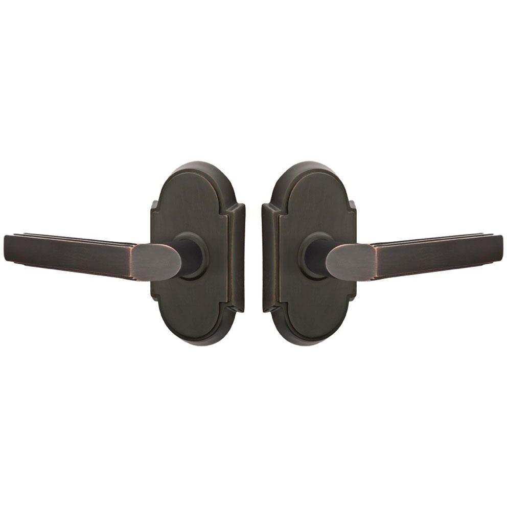 This solid brass lever door knob measures 4 5/8 inches overall with a 2 1/4 inch projection. Includes the two levers and door rosettes. Functional sets also include the lever latch, face plate and strike plate. This set is made for modern doors and it fits any door thickness between 1 3/8 inch to 2 1/4 inches thick. Functional sets come with a 2 3/8 inch back set latch - and a 2 3/4 inch back set may be requested at no additional charge. This door lever set comes complete with mounting hardware. Handing is required for leversets. The average lead time for this lever is approximately 3 to 5 business days.