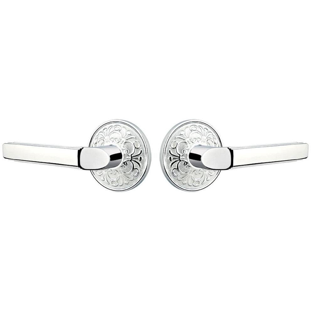 This solid brass lever door knob measures 4 5/8 inches overall with a 2 1/4 inch projection. Includes the two levers and door rosettes. Functional sets also include the lever latch, face plate and strike plate. This set is made for modern doors and it fits any door thickness between 1 3/8 inch to 2 1/4 inches thick. Functional sets come with a 2 3/8 inch back set latch - and a 2 3/4 inch back set may be requested at no additional charge. This door lever set comes complete with mounting hardware. Handing is required for leversets. This particular product has a lead time of approximately 3 to 5 business days.