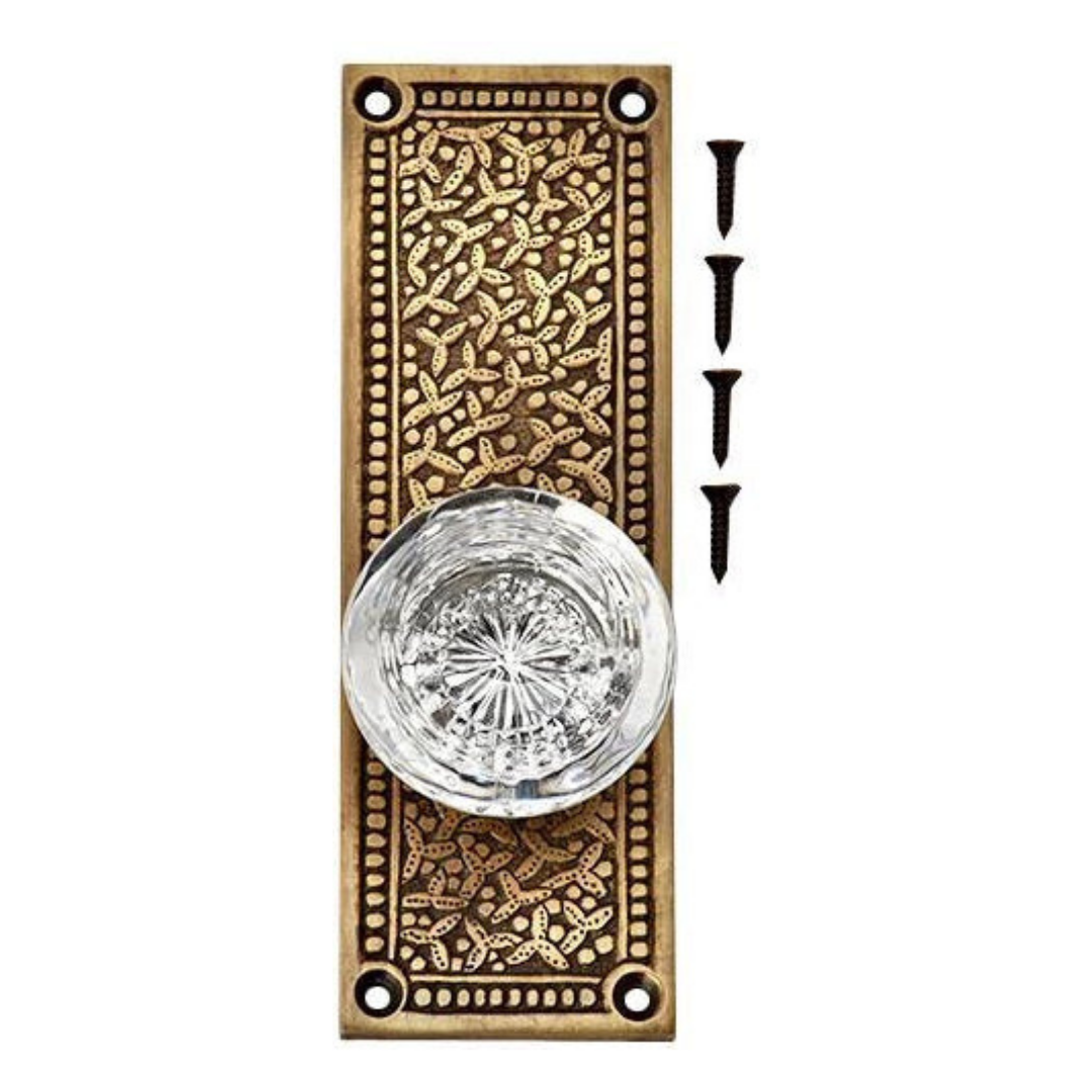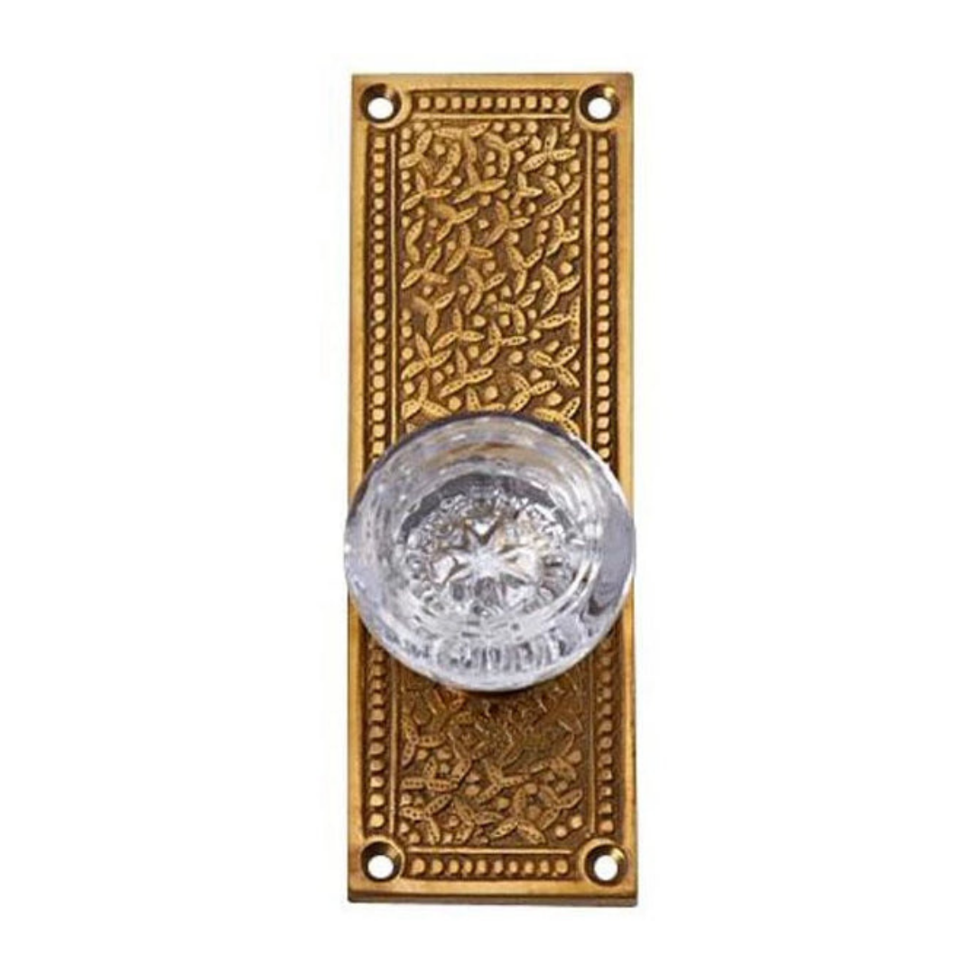 Rice Pattern Backplate Door Set with Round Crystal Door Knobs (Several Finishes Available)