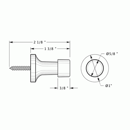 1 1/2 Inch Solid Brass Baseboard Door Bumper (Oil Rubbed Bronze Finish) - measures 1 1/2 inches long. This style of door stop provides protection for the door by preventing it from banging against a wall causing damage to drywall or plaster and paint. This door stop is available in many designer finishes and comes complete with the mounting hardware.