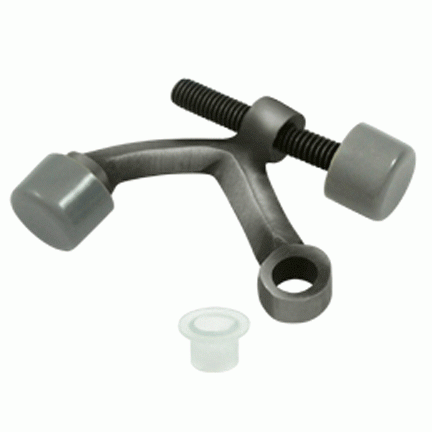2 3/8 Inch Solid Brass Hinge Pin Door Stop (Antique Nickel Finish) - Hinge pin door stops are used when a traditional spring or rigid door stop cannot be installed onto a base board. This style of door stop requires no mounting hardware - and it attaches to the pin of a hinge. This is available in several designer finishes.