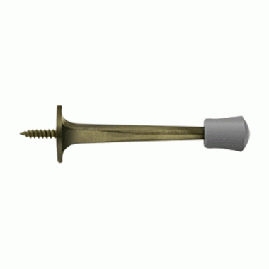 3 Inch Solid Zinc Alloy Baseboard Door Bumper (Antique Brass Finish) - measures 3 inches long. This style of door stop provides protection for the door by preventing it from banging against a wall causing damage to drywall or plaster and paint. This door stop is available in many designer finishes and comes complete with the mounting hardware.