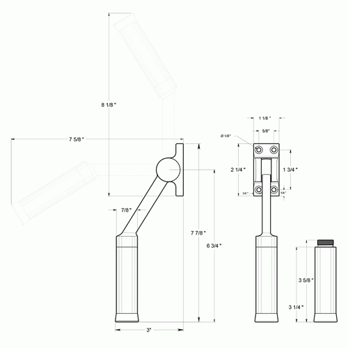 7 Inch Solid Brass Kickdown Door Holder (Brushed Chrome Finish) - this door holder is constructed from solid brass and its leg measures 7 inches long. This door holder is designed to stop the door from closing at a desired position until it is manually released. Comes complete with mounting hardware.