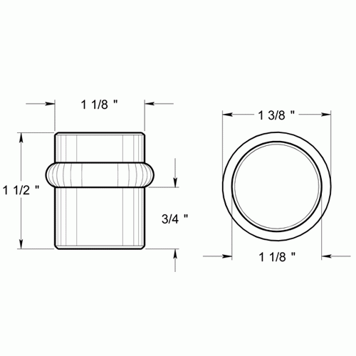 Floor Mounted Bumper in Solid Brass - a solid brass universal round shape modern floor mounted bumper (Polished Brass Finish) - this measures 1 1/2 inch tall and 1 1/8 inch in diameter (the rubber extends the diameter to 1 3/8 inch). It also comes complete with the mounting screws.