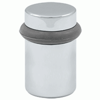 Floor Mounted Bumper in Solid Brass - a solid brass universal round shape modern floor mounted bumper (Polished Chrome Finish) - this measures 2 inch tall and 1 1/8 inch in diameter (the rubber extends the diameter to 1 3/8 inch). It also comes complete with the mounting screws.