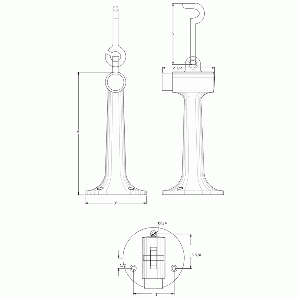 Floor Mounted Bumper With Hook & Eye - a solid brass universal modern floor mounted bumper (Antique Nickel Finish) - this measures 6 inch tall and 3 inch in diameter. It also comes complete with the mounting screws. This style of door stop provides protection for the door by preventing it from banging against a wall causing damage to drywall or plaster and paint. This door stop is available in many designer finishes and comes complete with the mounting hardware.