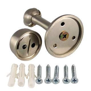 Magnetic Door Stop (Brushed Nickel Finish) - measures 3 inches long and comes with a two-screw concealed mount. Comes complete with the mounting hardware. This style of magnetic door stops both keeps a door open or stops it from banging against a wall causing damage to drywall or plaster and paint. This door stop is available in many designer finishes.