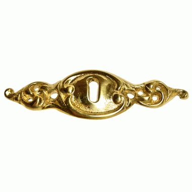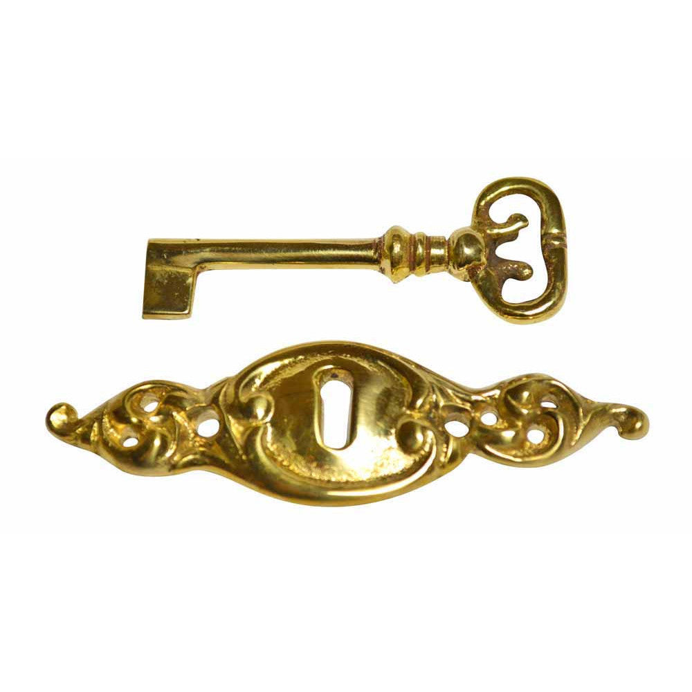 3 3/4 Inch Solid Brass Victorian Escutcheon (Polished Brass Finish). Measures approximately 3 3/4 inches long and just over 1 inch wide. Skeleton key sold separately. This Escutcheon is shown in Polished Brass and it is available in a wide variety of finishes including Polished Chrome, Antique Brass, Black Bronze, Polished Nickel, Antique Nickel and other designer finishes.