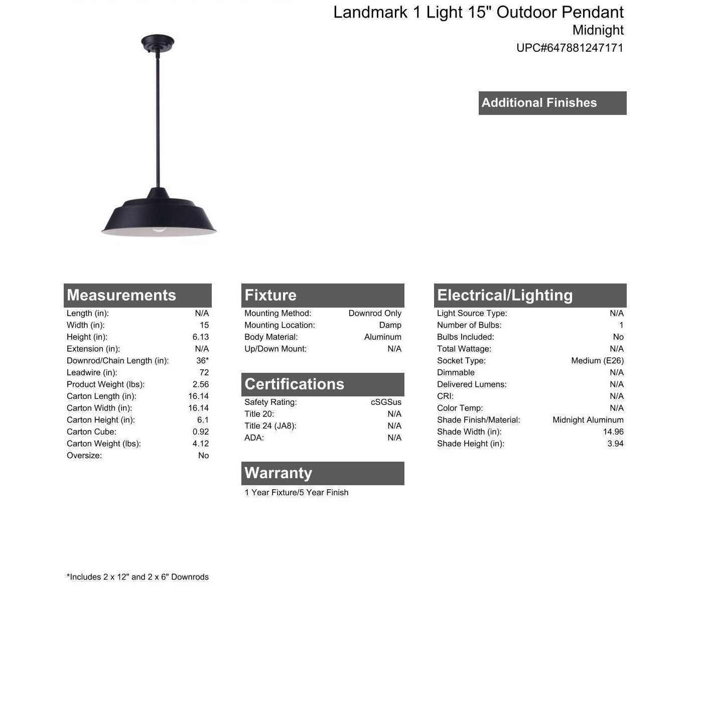 The Landmark Collection offers the timeless silhouettes of classic barn lights and coordinating pendants in three sizes 9", 12" and 15". Suitable for indoor or outdoor installation, the Landmark Collection features a traditional stacked neck design, gooseneck arm and elongated dome in a rich midnight finish with contrasting white interior protected by our 5 year guaranteed superior UV protection.