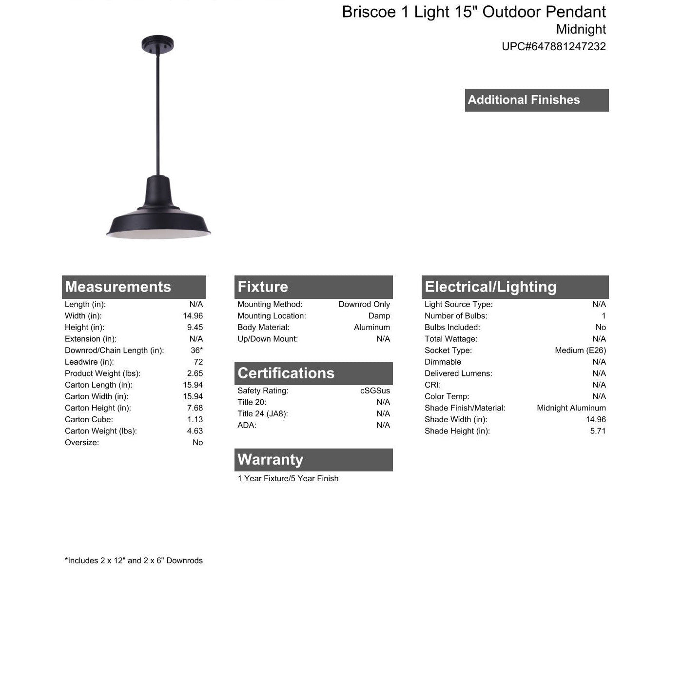 Briscoe 1 Light 15" Outdoor Pendant in Midnight