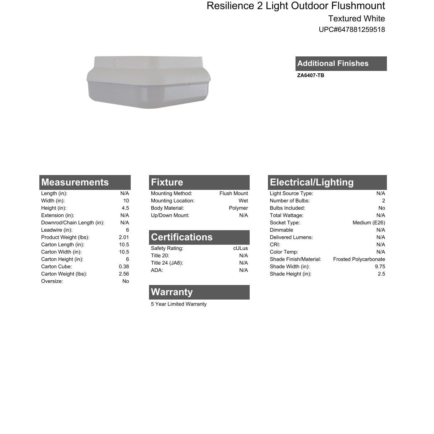 The Resilience Composite Lantern Ceiling Light collection features a clean rounded edge square frame encased in a crisp white acrylic lens. Constructed with durable non-corrosive UV-resistant resins warranted for 5 years, this flush-mount is at home even in the harshest environments.