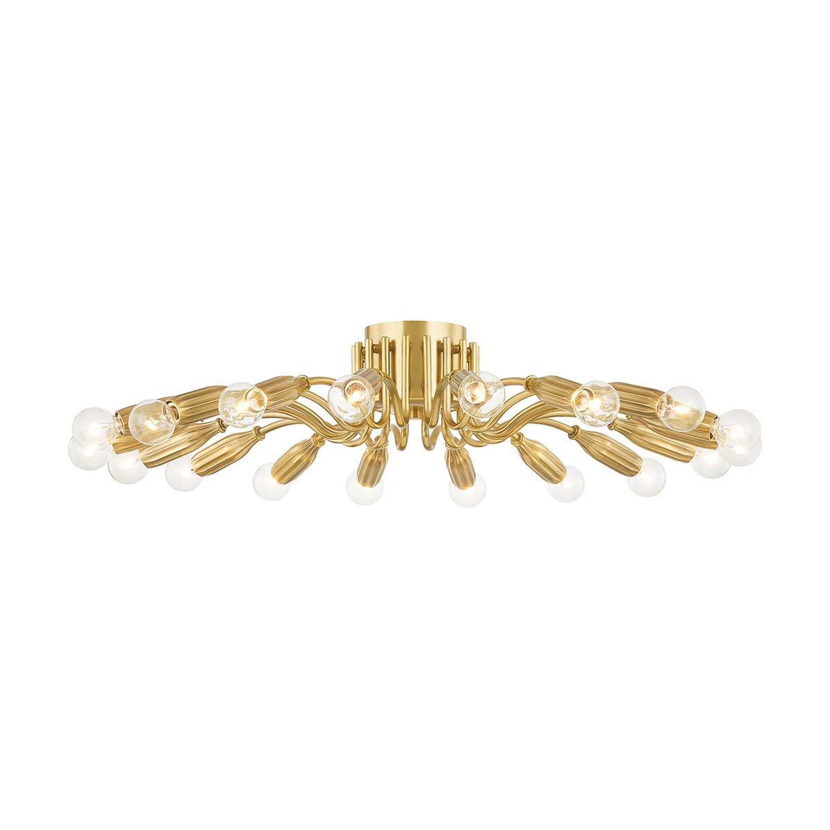 The Barney chandelier by Hudson Valley Lighting is an exquisite lighting fixture that combines elegance with functionality. With a diameter of 31.50 inches and a height of 6.00 inches, this stunning piece features 18 lamps, each utilizing an E12 candelabra base socket. It is designed to accommodate G16.5 recommended bulbs, with a total wattage of 8.00W for exceptional illumination. The chandelier is available in an Aged Brass finish, adding a sophisticated touch to your decor. Additionally, it has a UL Damp rating, making it suitable for various indoor spaces.