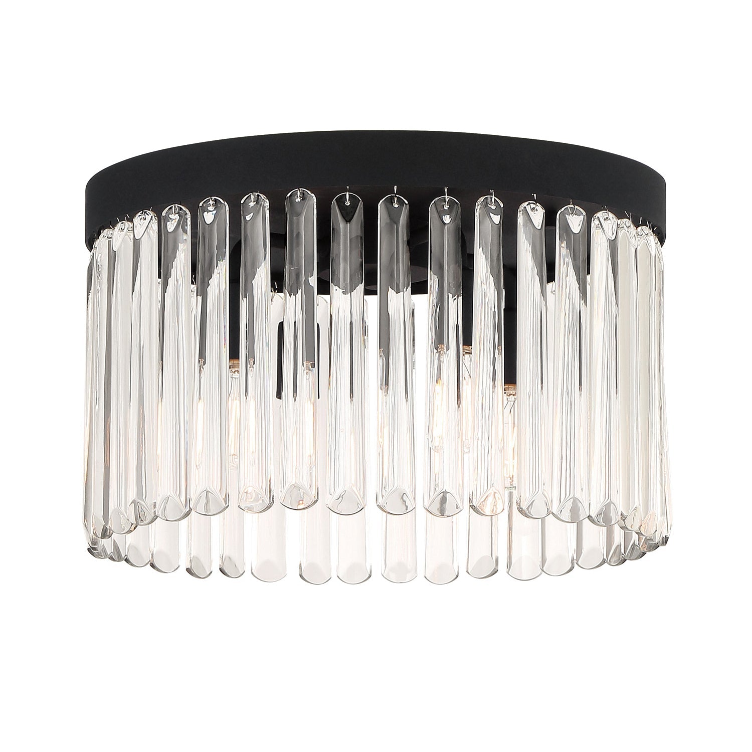 Art deco design is exemplified in the Emory collection. The collection features a row of smooth glass prisms hanging from a steel frame. Both the Black Forged and Modern Gold finishes, add all the sparkle and glamour you need in a fixture.