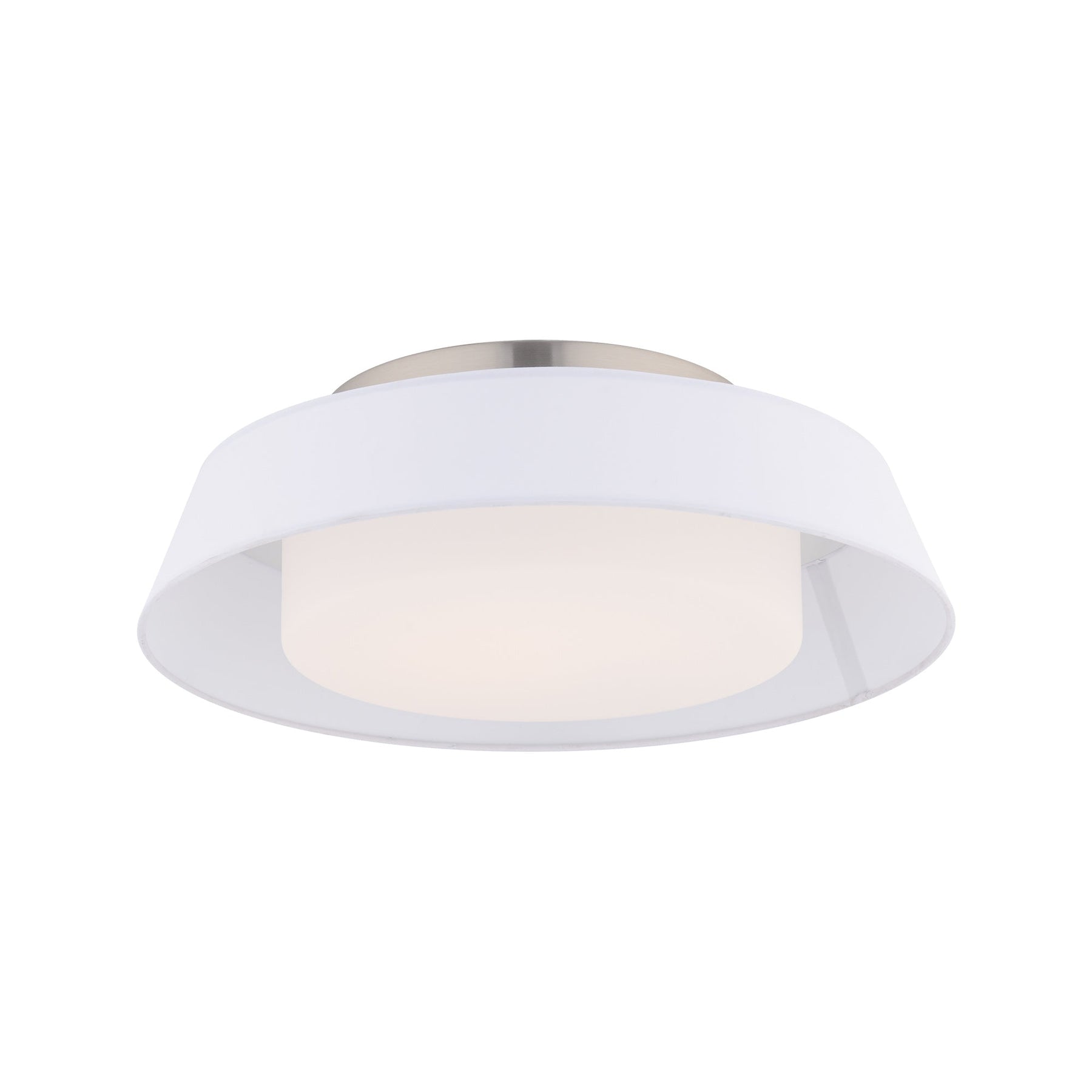 Chapeau 16in LED Flush Mount 4000K in White. A fabric shade caps a white, etched opal diffuser, bringing timeless elegance to rooms graced with its presence. Featuring aluminum construction, a fabric shade, and glass diffuser Chapeau damp location listed - it can be used indoor or covered outdoor areas Equipped with a 120V AC input LED driver that is concealed within the canopy for easy installation over a standard or pancake junction box. Smooth and continuous dimming with an electronic low voltage (ELV) or TRIAC dimmer. High Powered Replaceable LED with CRI: 90, Rated Hours: 50,000, Selectable Color Temp: 2700K-3000K-3500K-4000K Standards: ETL & cETL UL 1598 listed for Damp Locations. CEC Title 24 Compliant, and ADA Compliant.