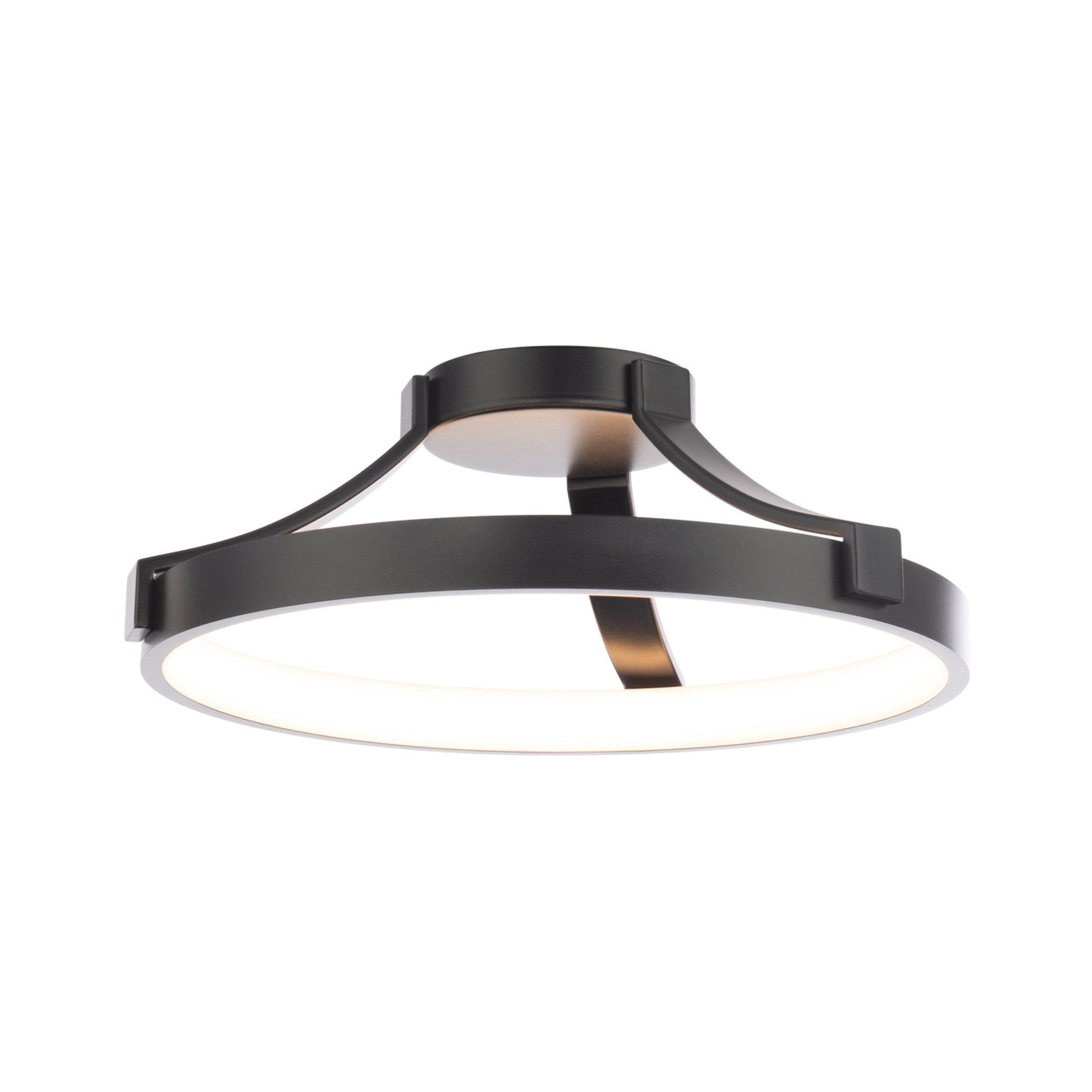 Chaucer 16in LED Semi-Flush Mount 3000K in White. Modern minimalism comes to light with robust black aluminum and powerful LEDs embedded within the diffuser. Chaucer is available in three stunning architectural finishes of matte black and white. This LED luminaire conceals a 120-220-277 universal input voltage driver and may be mounted on either the ceiling or wall. The light is dimmed with an electronic low voltage or TRIAC dimmer. High quality LEDS offer a soft white 3000K color temperature at a high 90 color rendering index and a long 50,000 hour life. This LED luminaire uses just 24 watts and delivers over 1200 lumens. A simple, clean ring design with an aluminum construction and a silicone diffuser that provides an abundance of ambient light. Chaucer is damp location listed - it can be used indoor or covered outdoor areas. This fixture can be mounted on a wall or ceiling to suit any application. Universal Input Voltage Driver (120V-240V-277V) concealed in fixture. Sloped ceiling compatible. Smooth and continuous dimming with electronic low voltage ELV, 0-10V, and TRIAC dimmer options. High Powered Replaceable LED Module CRI: 90, Rated Hours: 50000, Color Temp: 3000K Standards: ETL & cETL UL 1598 listed with IP44 rating for Damp Locations. CEC Title 24 compliant.
