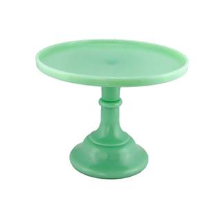 9 Inch Cake Plate (Jadeite Glass): the 9 Inch Cake Plate measures 7 1/4 inches tall and 9 1/4 inches in diameter. Hand made and hand pressed glass - made in the USA.