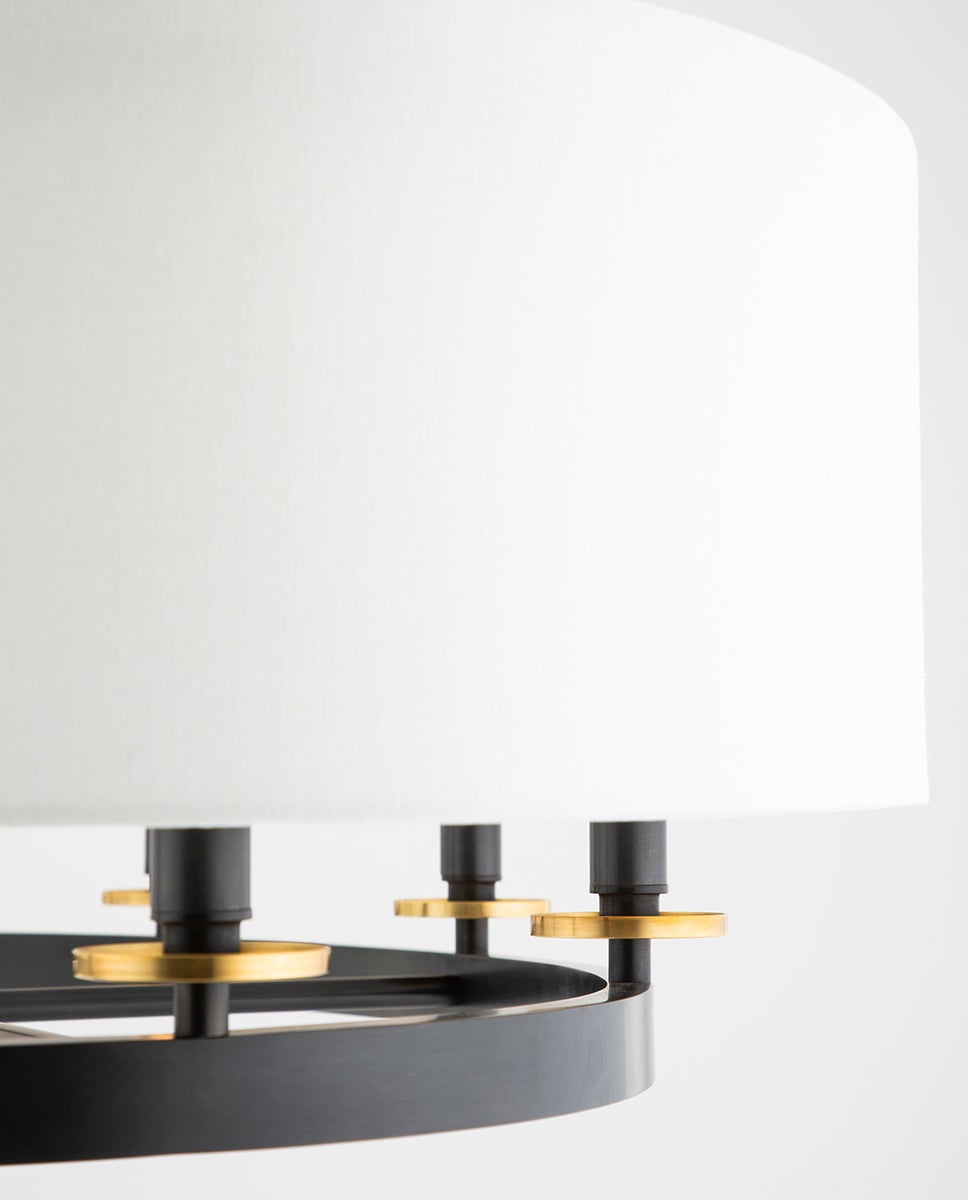The Durham Ceiling Fixture by Hudson Valley Lighting combines style and versatility with its elegant off-white linen shade and robust aging options, including Aged Brass, Aged Old Bronze, and Polished Nickel finishes. Measuring 39.25 inches in width, 11.75 inches in height, and 20.25 inches in length, this striking design features eight E12 candelabra base sockets, accommodating a recommended bulb type of B11 with a maximum wattage of 40W. Its UL Damp rating makes it a perfect lighting choice for areas exposed to moisture, while its refined aesthetics suit various interior styles.
