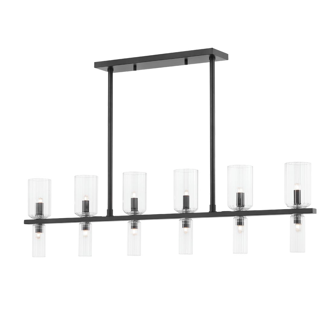 The Tabitha Chandelier by Mitzi is a stunning addition to any space, combining modern elegance with functional design. This exquisite fixture features a clear glass shade and accommodates 12 G9 LED bulbs (not included) with a maximum wattage of 25W each. Measuring 4.33 inches in diameter, 19.63 inches in height, and 41.75 inches in length, it is ideal for creating a radiant focal point in larger rooms. The chandelier is offered in three beautiful finish options: Aged Brass, Polished Nickel, and Soft Black. Furthermore, the Tabitha is UL Damp rated, ensuring it can enhance your décor even in more humid areas.