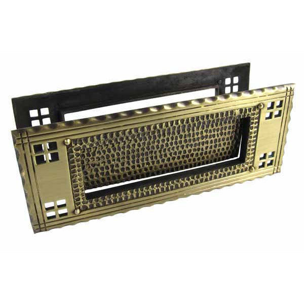 - Arts & Crafts Style Mail Slot for Front Doors (Antique Brass)