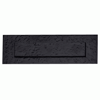 Solid Iron Rustic Mail Slot (Flat Black Finish) - Constructed from solid iron and hand finished in USA. This piece measures 10 3/8 inch wide by 3 3/8 inch tall. Slot opening measures approximately 7 5/8 inches wide by 1 5/8 inches tall.