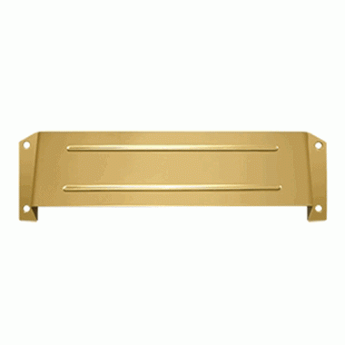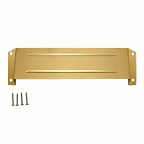 12 1/2 Inch Mail Slot & Sleeve Letter Box Hood (Lifetime Polished Brass Finish) - measures 3 5/8 inches by 12 1/2 inches. This is a privacy accessory compatible with DTMS003, DTMS211, and DTMS212 mail slot models.