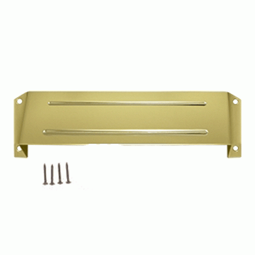 12 1/2 Inch Mail Slot & Sleeve Letter Box Hood (Polished Brass Finish) - measures 3 5/8 inches by 12 1/2 inches. This is a privacy accessory compatible with DTMS003, DTMS211, and DTMS212 mail slot models.