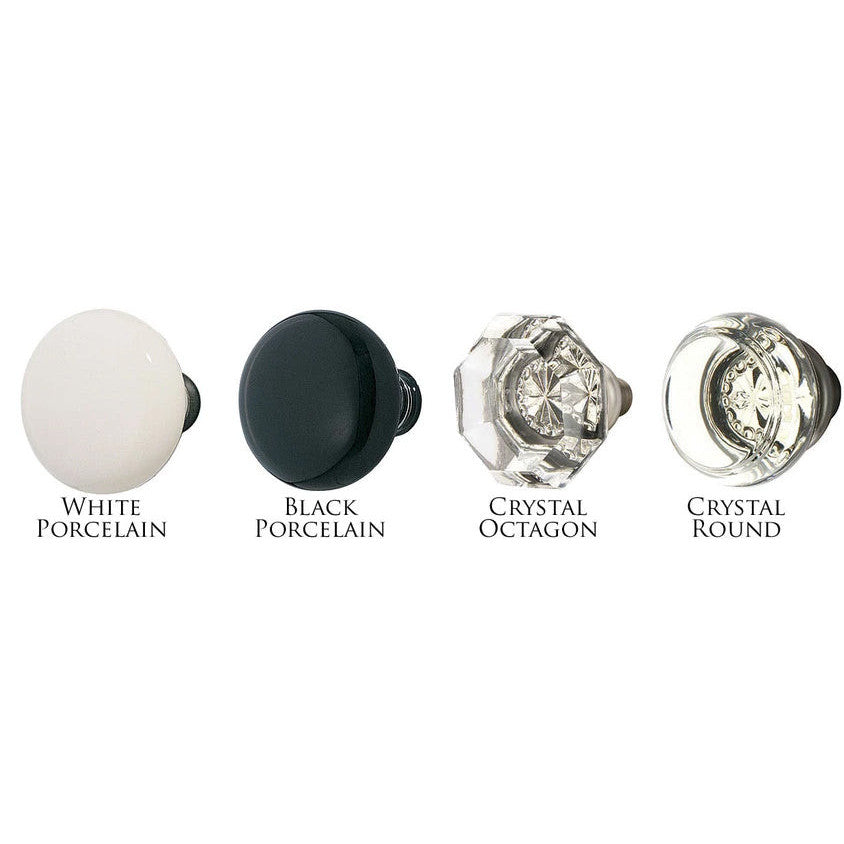 Solid Brass Mormont Style Mortise Entryway Set (Polished Chrome Finish) - this entryway set measures 2 1/2 inch wide by 17 1/2 inch tall. Various styles of knobs available at no additional charge. Entryway set deadbolt to knob center-to-center distance is 5 1/2 inches. Entryway mortise backset comes as 2 1/2 inch standard and a 2 3/4 inch backset is available if required. The overall grip thickness is 1 inch. The clearance between the door and grip is 1- 1 3/4 inches. The plates have a thickness of 1/2 inch. This is a complete set and it comes with tubular latch mechanisms, strike plates, complete knob sets, internal mechanisms, deadbolts and all mounting hardware.[/description]