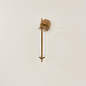 The Blaze Wall Sconce by Troy Lighting features a sleek design with a width of 4.50 inches and a height of 16.50 inches, making it perfect for both modern and traditional interiors. It has an elegant 4.00-inch extension and is equipped with a single integrated LED socket that emits 225 lumens at a warm color temperature of 2700K, ensuring a cozy ambiance. Constructed with durable glass and acrylic shade materials and finished in a stylish Patina Brass, this sconce combines functionality with aesthetic appeal. With a high color rendering index (CRI) of 90, this light enhances the colors in any space. Please note, this fixture is not field serviceable and is rated for ETL Wet locations.