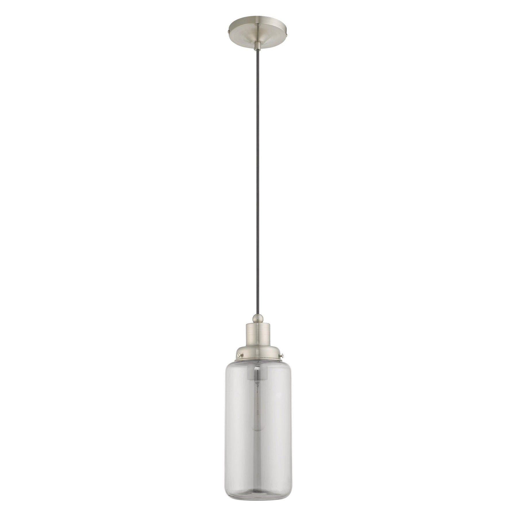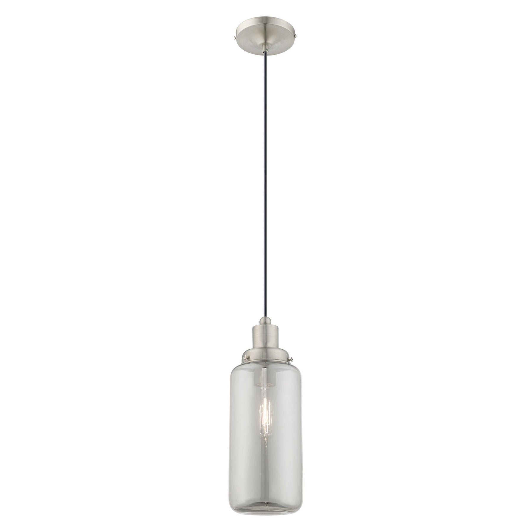 The 40640-91 Art Glass Mini Pendant features a unique hand-blown smoke glass shade that adds an authentic charm to any transitional decor. This versatile fixture measures 15.5 inches in height, adjustable up to 80 inches, with a diameter of 5 inches and a canopy size of 4.75 inches. It requires one medium base bulb (not included), supporting a maximum wattage of 60W. Designed for damp locations, this pendant is perfect for various settings while accommodating sloped ceilings, making it an ideal choice for kitchens or dining areas.